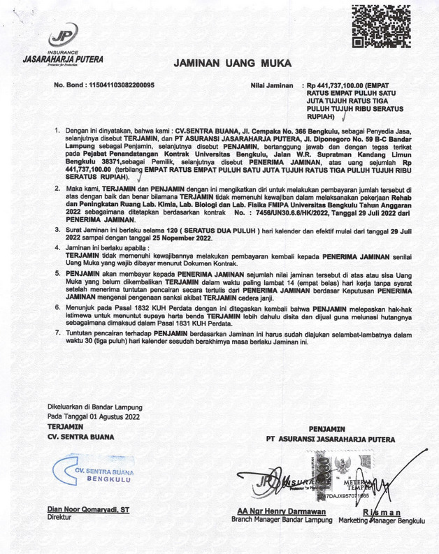 1Dokumen Kontrak yang telah ditandatangani beserta Perubahan Kontrak yang tidak mengandung informasi yang dikecualikanlihat